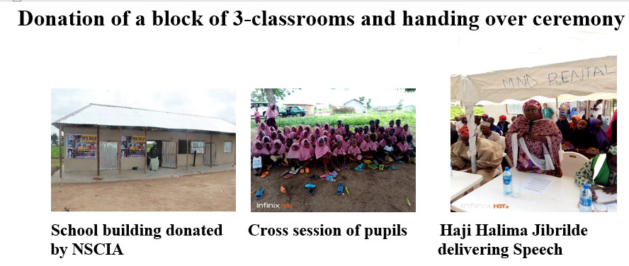 One of the projects implemented by MESH was the construction of a 3-classroom building for the Nomadic school in Angwan Fulani community in Lugbe, Abuja. The project was initiated by IbnRaji Educational Foundation who sought the assistance of MESH. Having conducted the ‘needs assessment’ of the school, a 3-classroom building was constructed for the school in March 2018. In addition to the support for building construction, MESH supplied 50 wooden desks and 50 benches to the school in April 2018 and labelled them as being donations from Nigerian Supreme Council for Islamic Affairs (NSCIA). The handing-over ceremony was held on 22ndJune 2018. This was to commission the building and officially hand over the school to IbnRaji Educational Foundation who in turn hands over to the Nomadic community. The commissioning was done by Hajia Halimah Jubril, the National Amirah of FOMWAN. She represented the NSCIA. The program was attended by the Chairman and officials of IbnRaji Educational Foundation, MESH officials, the community and the pupils.
